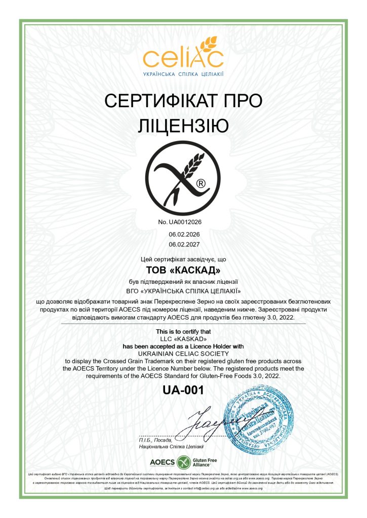 Сьогодні ми з гордістю можемо констатувати, що Україна приєдналася до сім’ї сертифікованих європейських виробників безглютенової продукції